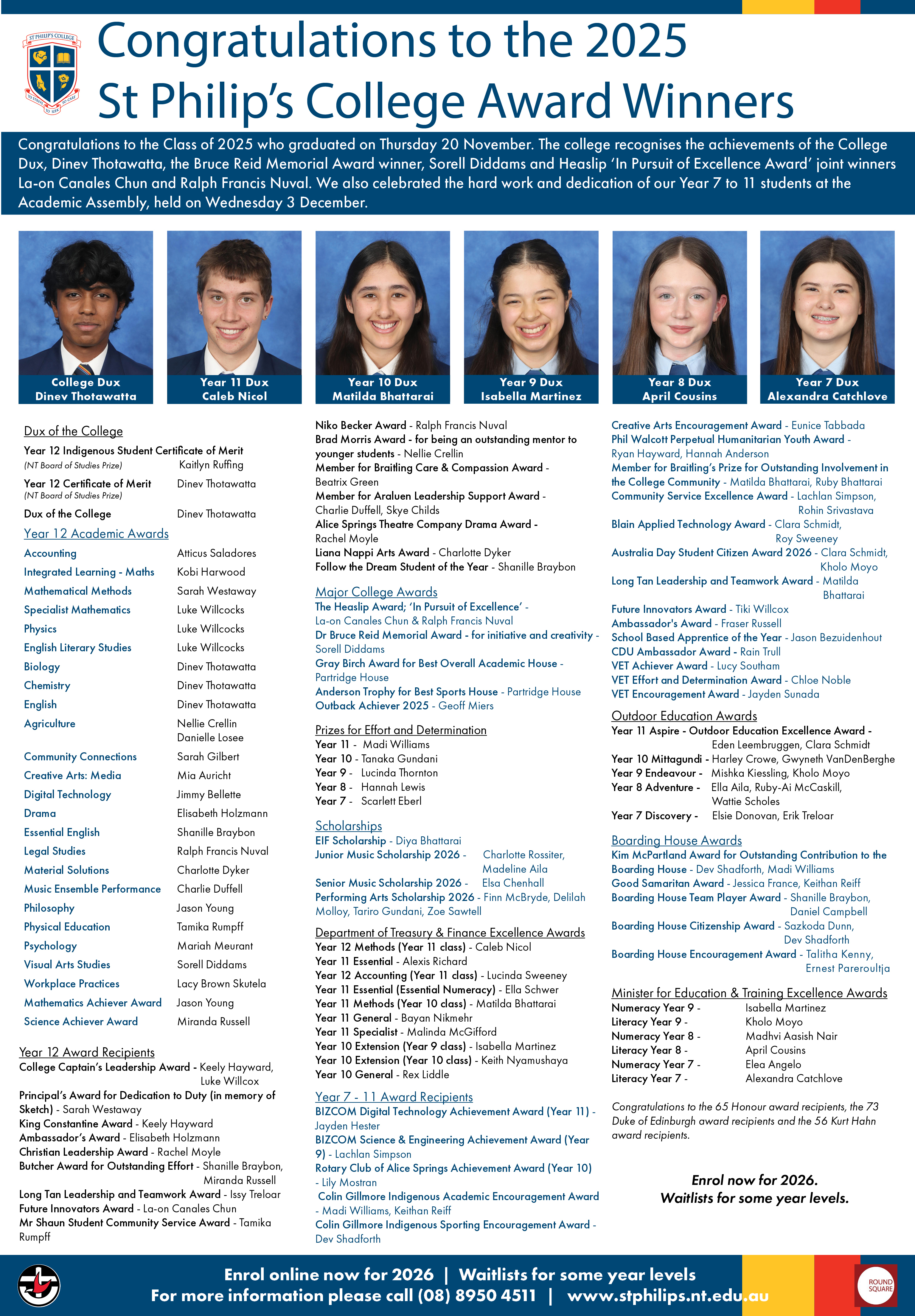 | Year 12 Award | Recipient for 2025 |